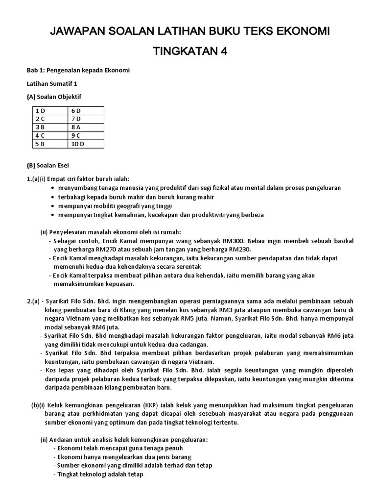 Latihan ekonomi tingkatan 4 ekonomi tingkatan 4 .